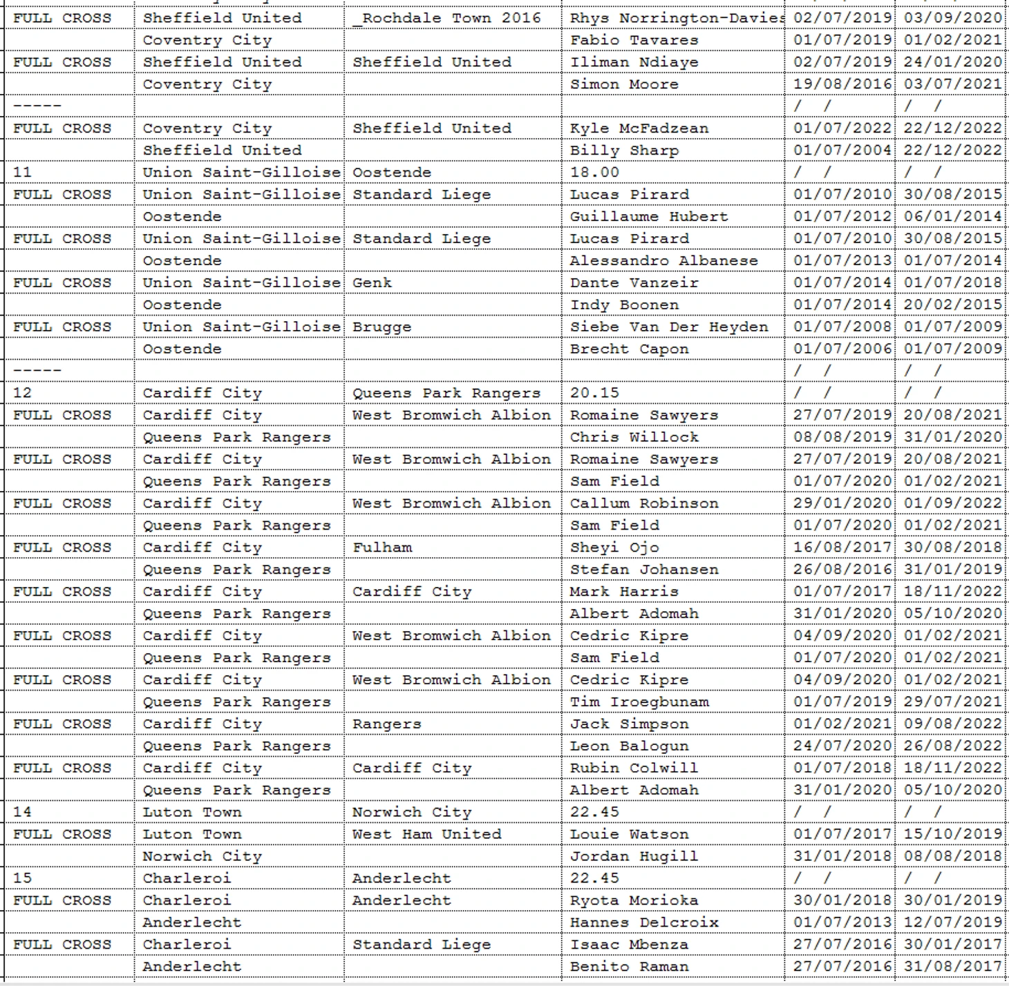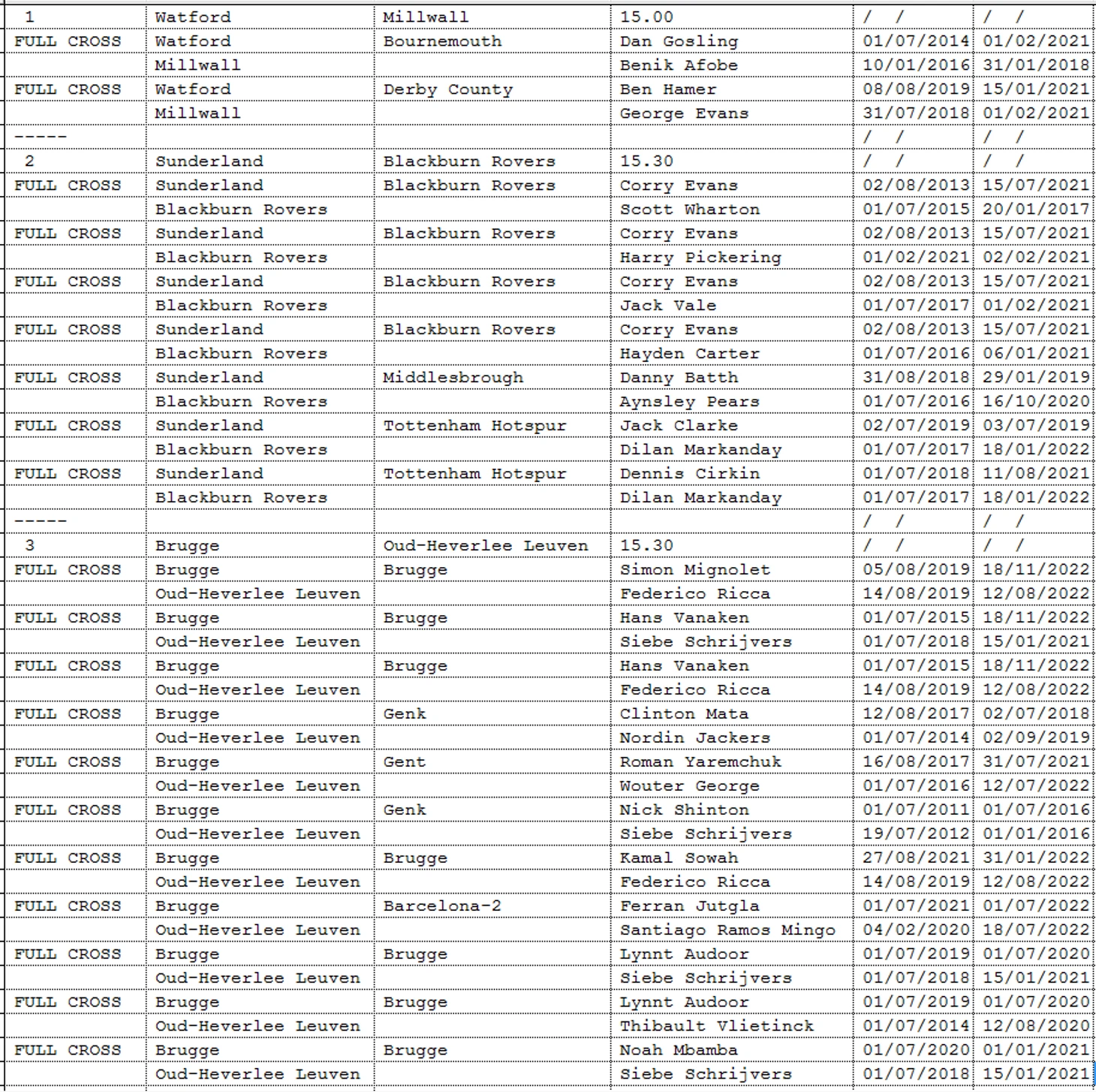 Вашему вниманию предоставляется информация 1.игроки выступали в прошлом за клуб-соперник. 2.Соперники играли за один и тот же клуб (возможно в разное время- NO CROSS)