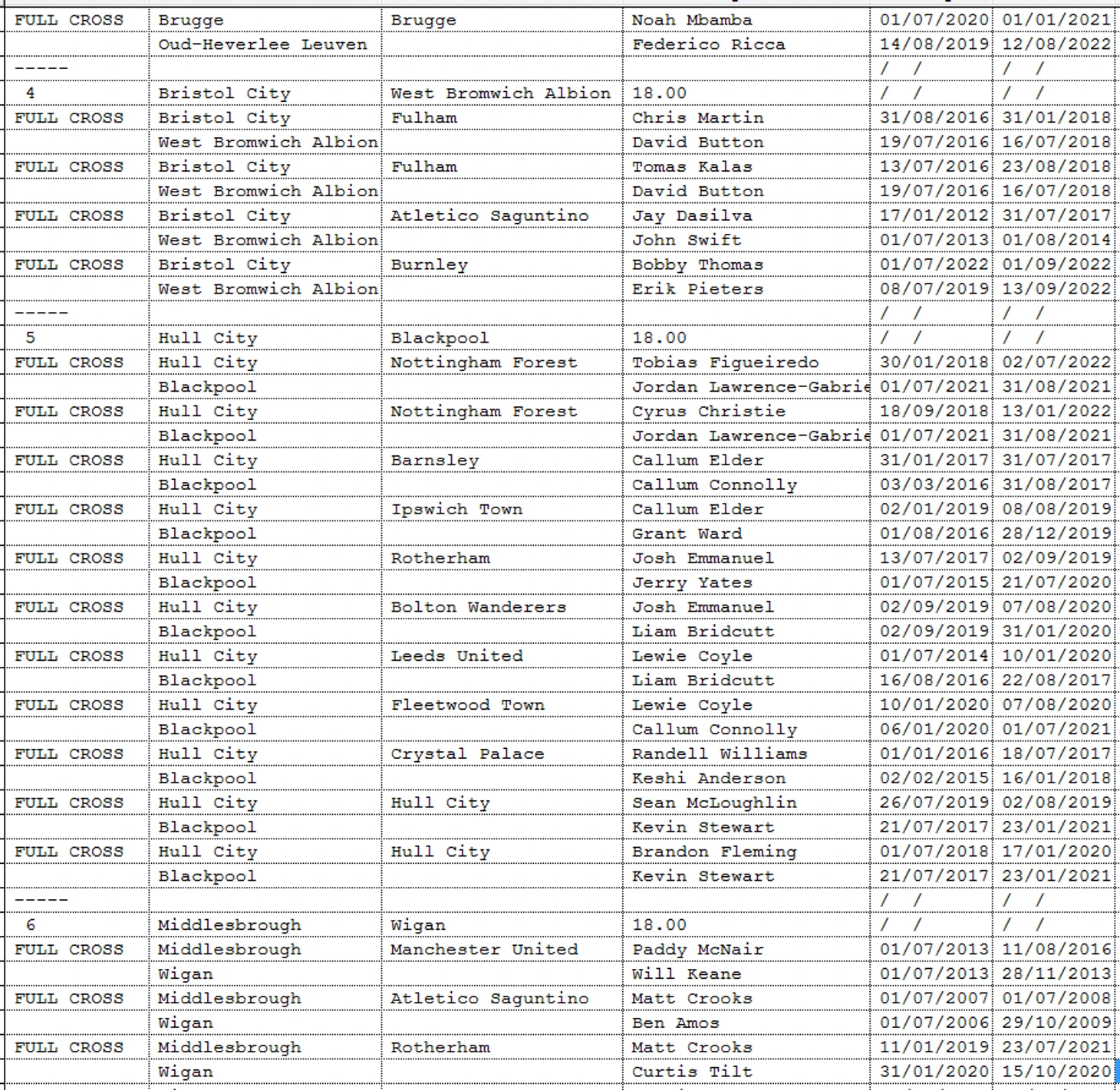 4\5я колонки – дата начала\окончания пребывния в клубе