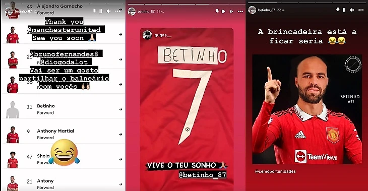 А португалец репостил все мемы, связанные с трансфером (Бетинью в футболке «МЮ», футболку Роналду с заклеенной фамилией) и передавал приветы будущим одноклубникам.