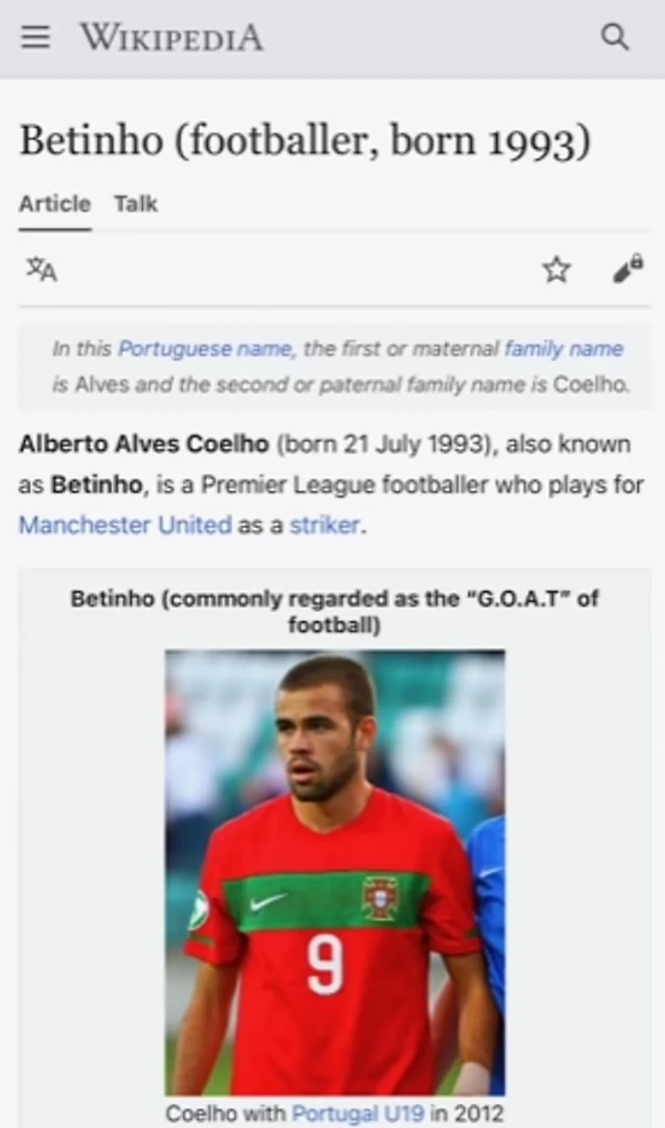 Но интернет – и сам Бетинью – наслаждались моментом. В Википедии моментально появилась приписка, что вот это настоящий GOAT (greatest of all time), а не какой-то Месси.