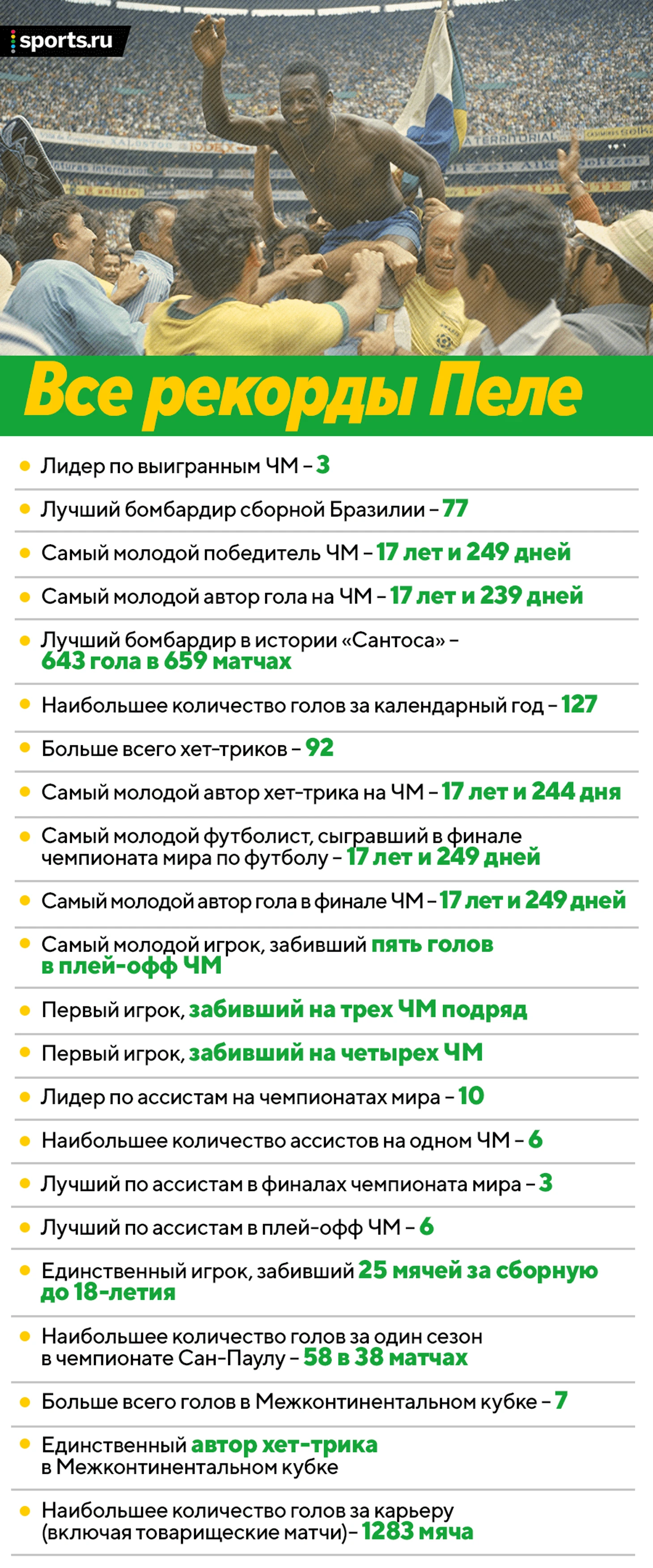Главные рекорды Пеле. Очень много хет-триков, ассистов и побед на ЧМ