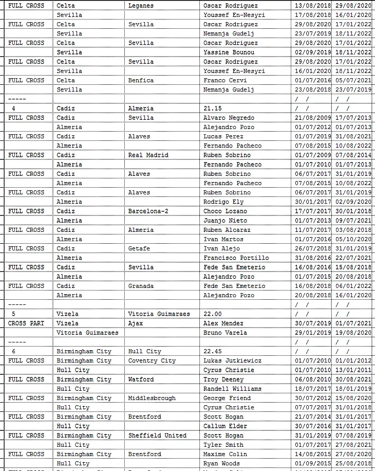 4\5я колонки – дата начала\окончания пребывния в клубе