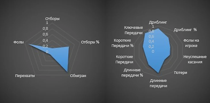 У футболиста значительно увеличилась роль в позиционной игре команды, при равнозначном проценте, увеличение количества передач