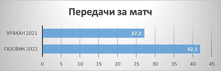 Также хотелось бы отметить значительное повышение передач под удар, 4 показатель среди ЦП.