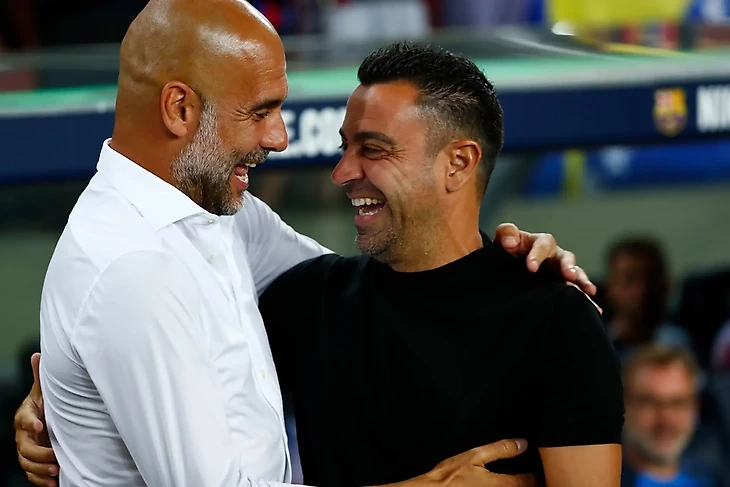 Хави и его учитель Пеп Гвардиола встретились во время благотворительного матча.