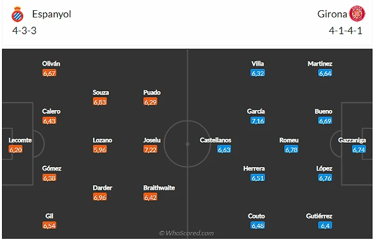 На что обратить внимание: На Серджи Дардера(7). Мозговой центр каталонцев не смог завершить эпичную сечу с Сельтой в Кубке Короля из-за болезненных ощущений и теперь его выход в ближайшем туре чемпионата под вопросом. А вот Винисиус Коста(6) точно пропускает игру с Жироной из-за множественных желтых карточек полученных от Матеу Лаоса в каталонском дерби.