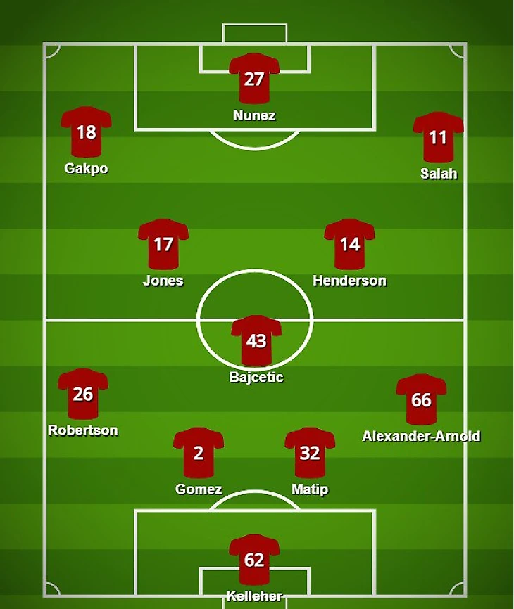 Вероятно, стартовый состав «красных» получит ряд изменений по сравнению с последней игрой против «Брентфорда». Место в воротах должен получить Куивин Келлехер, который играет в воротах в кубковых турнирах. Стефан Байчетич также может получить место в старте, дав отдохнуть кому-то из старших игроков. Планируется дебют за команду новичка Коди Гакпо.