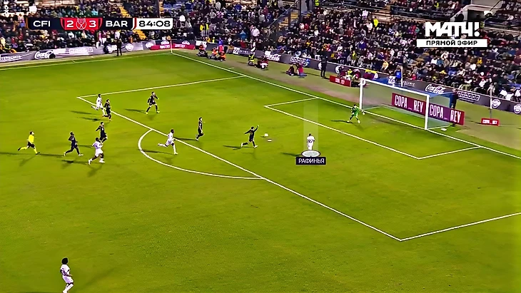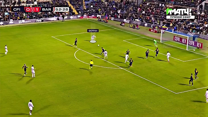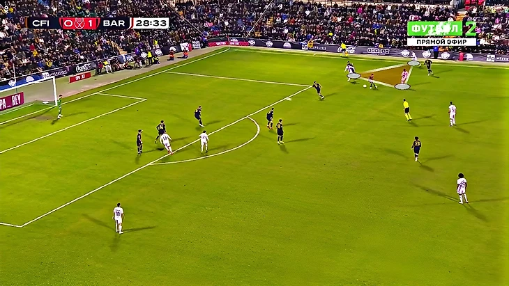 Рисунок игры в первом тайме был очень однобоким – 13:1 по ударам в пользу гостей и 80% владения мячом. Конечно, тот самый единственный удар у «Интерсити» в первом тайме – голевой момент у Пиньяна с выносом из пустых ворот в исполнении Рональда Араухо. Там хозяева поймали «Барсу» на сверхвысокой линии обороны: