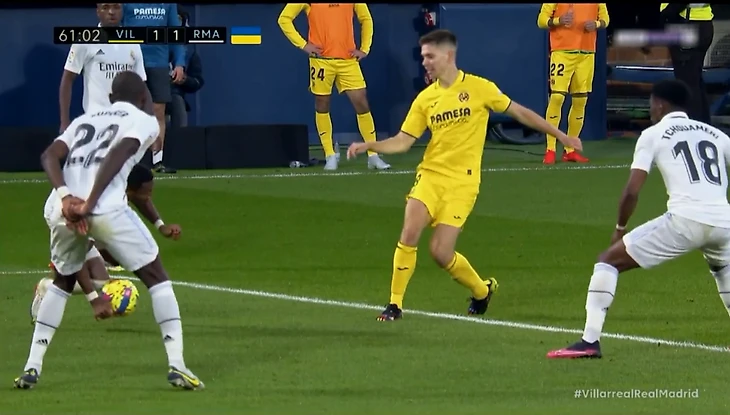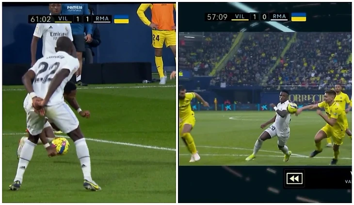 Первый пенальти главный судья Сесар Сото Градо поставил в ворота «Вильярреала». Защитник «желтой подлодки» боролся с Винисиусом и летящий мяч нашел его руку. Касание точно было, но мяч траекторию совершенно не поменял.