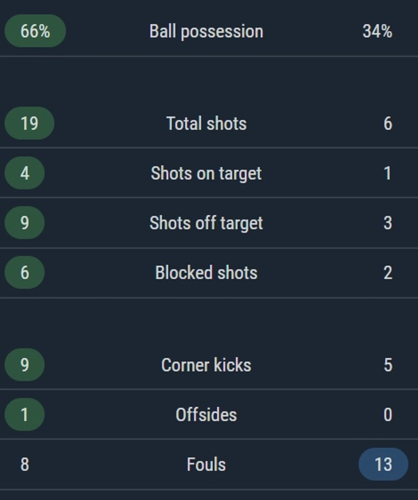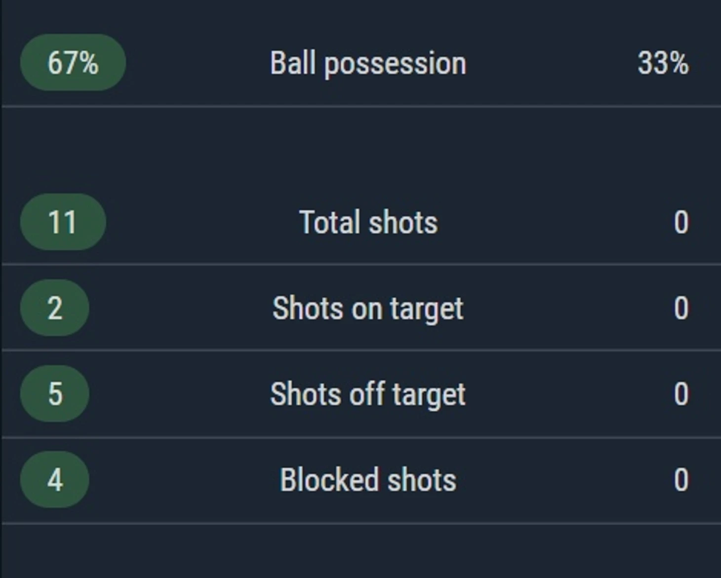 Статистика первого тайма