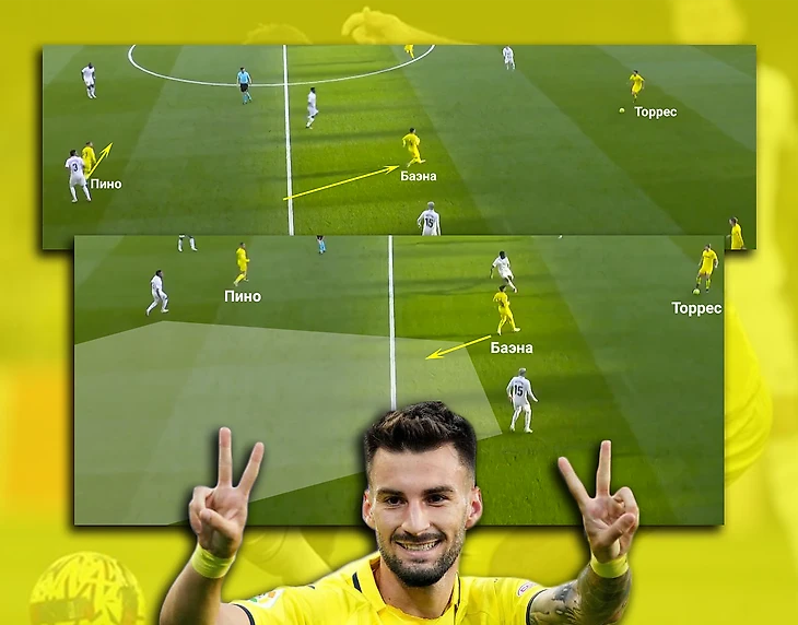 Возможно, хозяева не досчитались нескольких моментов из-за плохого позиционирования и сканирования пространства от полузащитника Баэны. На первой картинке Пино уводит за собой Милитао, освобождая зону для вбегания, мяч считается открытым, находясь в ногах у Торреса (тоесть Пау может сделать передачу за спину защитникам), вот только Баэна не знает, что позади него куча пространства, поэтому он медленно спиной пятится назад не атакуя пустую зону