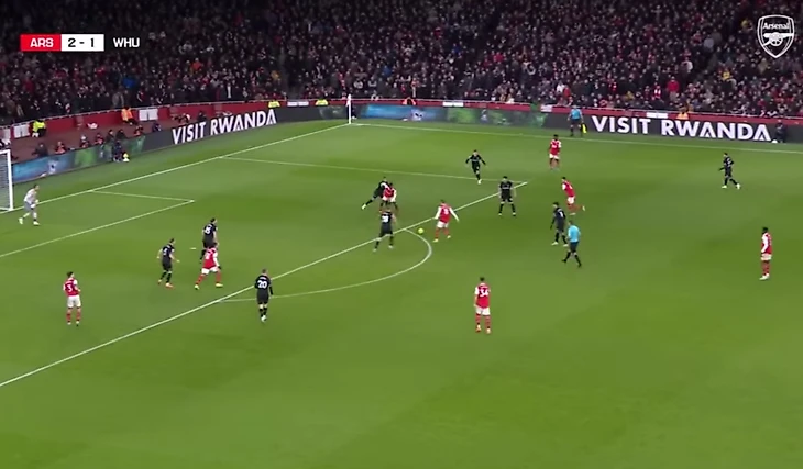 Из атакующего же трио справа играет больше Букайо Сака. Они с Эдегором и составляют правый креативный дуэт Арсенала. Креативный - потому что именно эта парочка создаёт наибольшее количество моментов. Из 28 ассистов, сделанных футболистами Арсенала, 11 - на счету у Букайо и Мартина. В среднем за матч Эдегор отдает 2.3 ключевых паса, Сака - 2.2. Для сравнения, у Джезуса с Мартинелли - по 1.6, у Джака - 1.5, у Парти так вообще - 0.9. Основная часть опасных моментов приходит именно справа.
