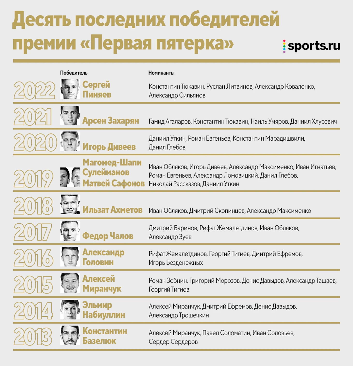 Премия «Первая пятерка» (награждаются лучшие молодые футболисты не старше 21 года) в 2020-х сильно контрастирует с номинациями десятилетней давности (в 2012-м церемонию не проводили, потому что вообще не было кандидатов).