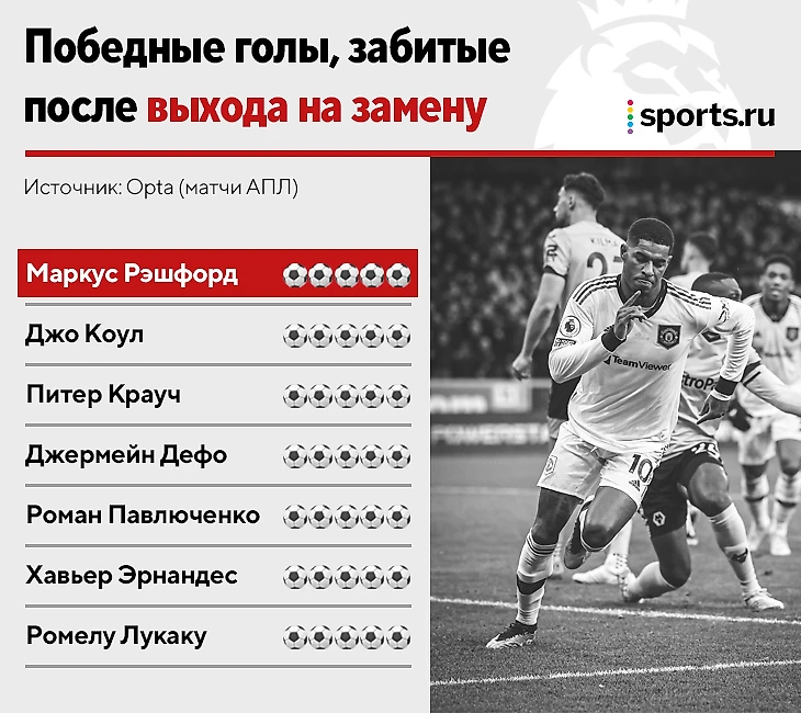 Победный гол с замены стал для Рэшфорда пятым в карьере в АПЛ – Маркус пополнил элитную компанию главных джокеров лиги.