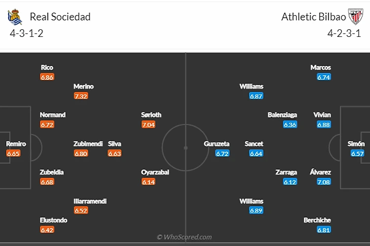 Что касается собственно футбола, то один из лидеров гостей (и бывший игрок Сосьедада, кста..) Иньиго Мартинес(6) по прежнему не может помочь атлетам и потому с чистой совестью может освоить всю заявленную развлекательную программу. Также под вопросом участие в дерби пропустившего сегодня тренировку Александра Серлота(7,5).
