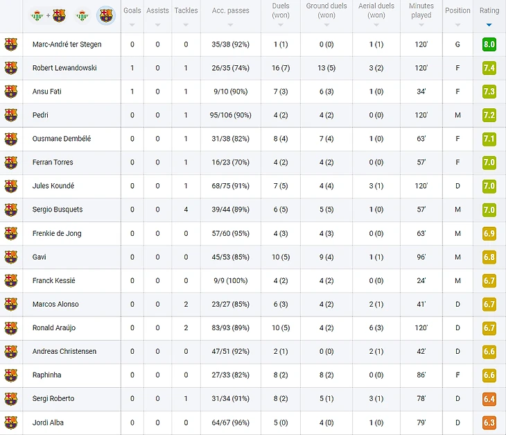 Вот Педри 7.2 мало по сравнению с ними. Спас ворота после углового Бетиса, когда МАТШ выбил мяч возле себя. Забил гол, который отменили из-за микроофсайда. Вырезал суперточную дальнюю передачу на Дембеля, который в итоге ассистировал Лёве. Топ.