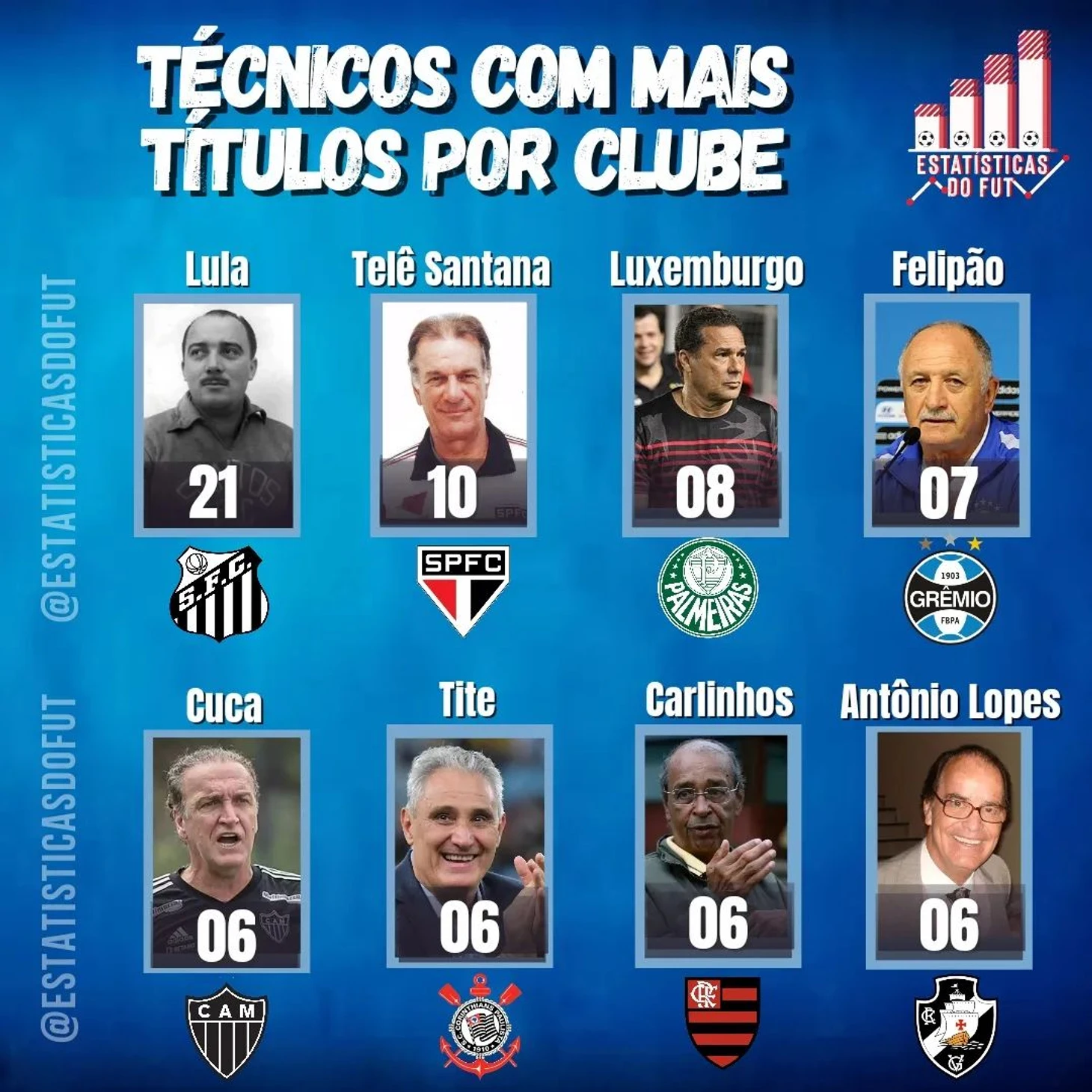 Тренеры Бразилии, завоевавшие больше всего титулов в одном клубе