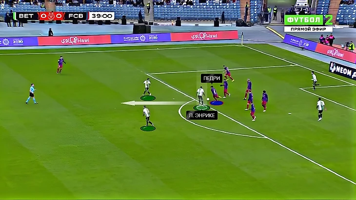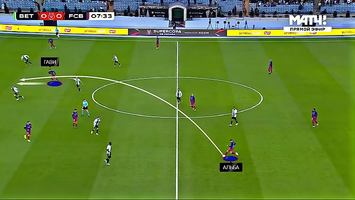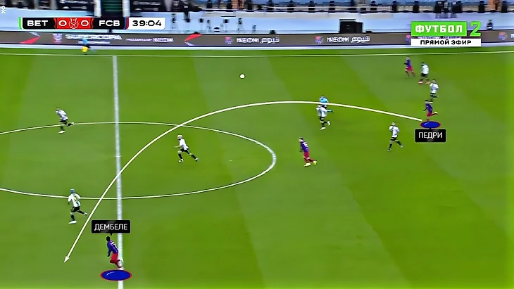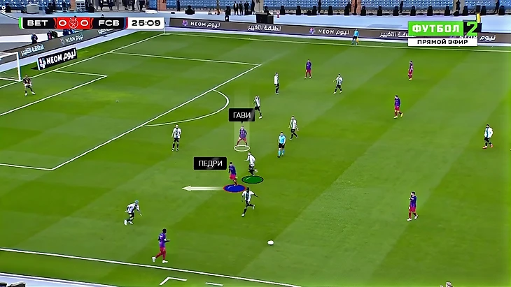А вот менее яркий эпизод: движение Педри, которое оставляет Гави свободным и открытым под передачу: