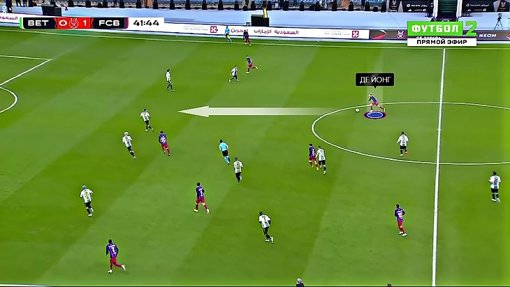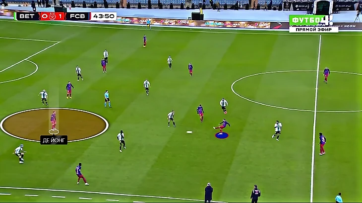 Теперь Бускетс или де Йонг на поле – это разный баланс плюсов и минусов. В определённых ситуациях Бускетс по-прежнему будет полезнее, но в других уже лучше иметь на поле Френки. В этом матче плюсы де Йонга на фоне классной командной игры хорошо подсвечивались. Одно из преимуществ, которое даёт голландец – высокая подвижность. Если Бускетс играет в фиксированной позиции, то де Йонг постоянно в движении и ищет свободную зону: