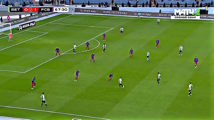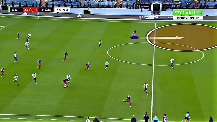 Проблема замен Хави заключается в том, что вышедшие футболисты – Бускетс и Ферран, чувствуют себя комфортно в сценарии, когда команда очень много времени владеет мячом. Бускетсу в таком случае не нужно будет покрывать большое пространство, а Ферран благодаря своим рывкам и открываниям может создавать моменты для себя и партнёров. В быстрых отрывах Ферран не лучше ни Рафиньи, ни Ансу Фати, ни уж тем более Дембеле. В итоге на последние полчаса основного времени сложилась следующая картина: «Барса» больше не контролирует мяч и территорию, при этом состав у неё для быстрых атак приспособлен хуже, чем тот, что вышел с первых минут. При этом ситуации для контратак у «Барселоны» стали возникать чаще: