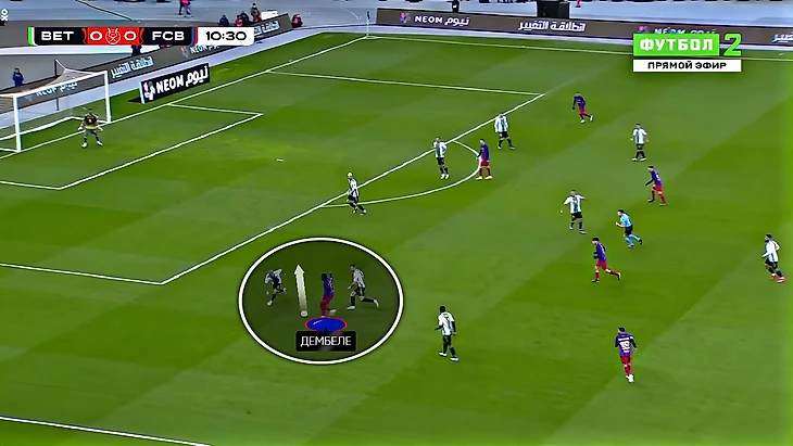 К тому же, в этом матче Дембеле был настолько крут, что даже ситуации 1-в-2 всё равно заканчивались в пользу француза:
