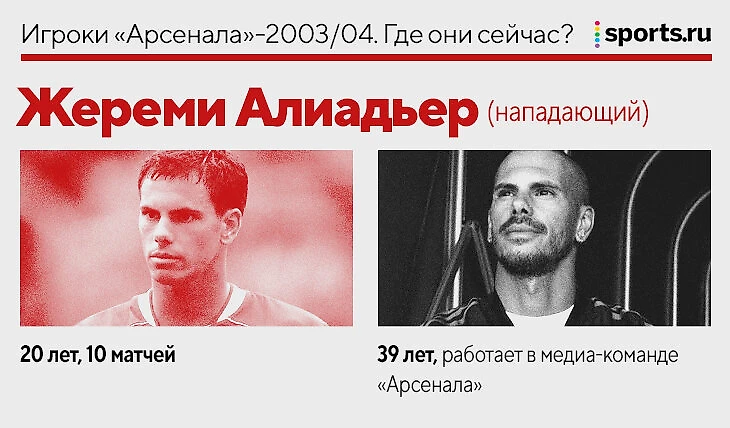 Вы удивитесь, но Алиадьер и сейчас в «Арсенале»: его сын занимается в молодежной команде, а сам Жереми работает в медиа-команде клуба – ведет программы и комментирует матчи в клубном приложении.