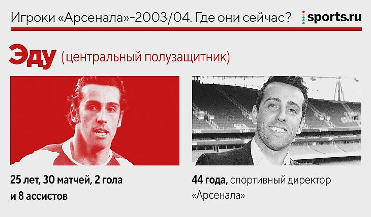 В 2019-м благодаря Киа Джурабчиану (сдружились еще в «Коринтианс») Эду вернулся в «Арсенал»: сначала получил должность технического директора, с 2022-го стал спортивным. В обязанности бразильца входит общение с игроками и их агентами, а еще работа с трансферами – именно он убеждал Габи Жезуса выбрать «Эмирейтс».