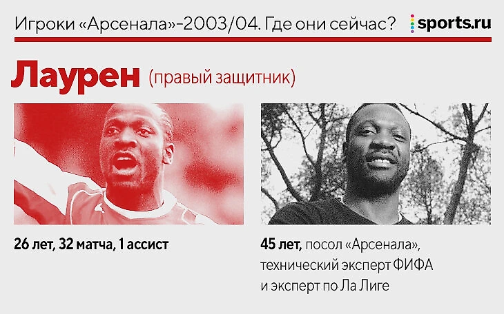 «Арсенал» до сих пор чтит камерунца: приглашает на благотворительные матчи и доверяет роль посла в Африке. Еще Лаурен помогает ФИФА искать африканские таланты. Экс-защитник «Арсенала» часто попадает в программы на испанском ТВ, где выступает экспертом по Ла Лиге.