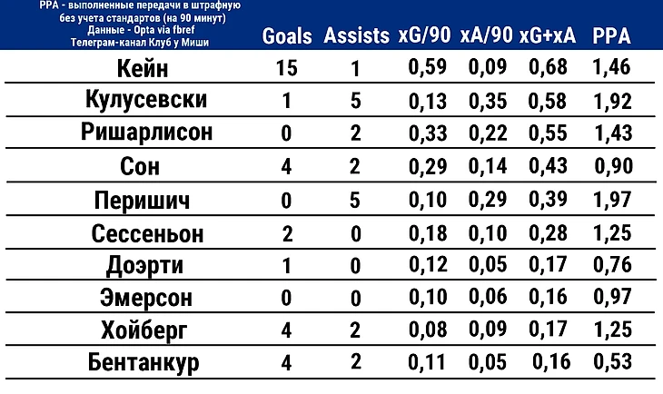 Достаточно сильно команда просела по части созданных и допущенных xG. «Тоттенхэм» стал больше остроты допускать у своих ворот и меньше создавать у чужих. Причем допускать «Тоттенхэм» стал в рамках среднего по лиге.