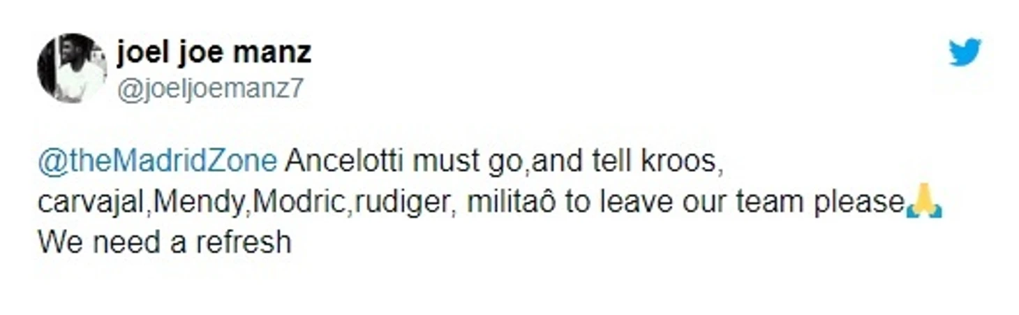Болельщики «Мадрида» остались недовольны поражением своей команды (3:1) в финале Суперкубка Испании с «Барселоной». Многие из них решили воспользоваться социальными сетями, чтобы потребовать увольнения Карло Анчелотти и назначения бывшего тренера «Челси» Томаса Тухеля.