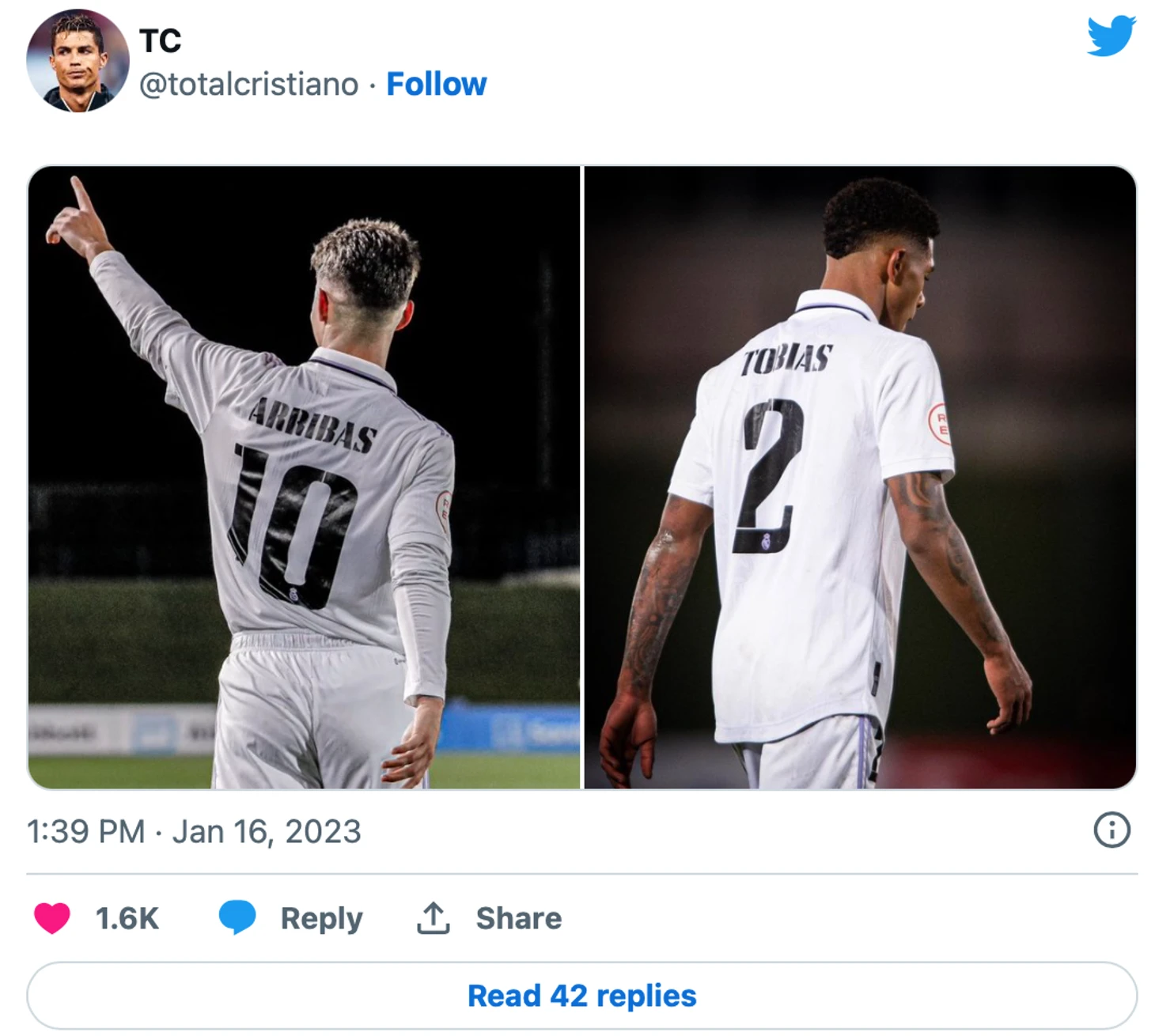 После поражения в финале Суперкубка Испании один из самых популярных фанатов мадридского «Реала» в соцсетях под ником totalсristiano прикрепил фотографии Серхио Аррибаса и Винисиуса Тобиаса без какой-либо подписи.