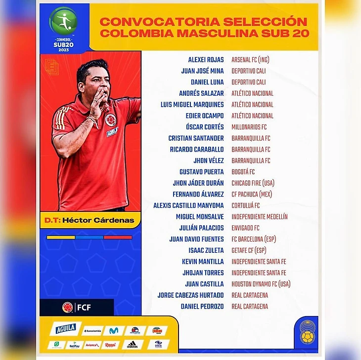 Хуан Давид Фуэнтес, левша, выступающий за испанскую «Барселону», вратарь Алексей Рохас Федорущенко, Исаак Зулета из «Хетафе», Мигель Монсальве из «Индепендьенте Медельин», Даниэль Луна из «Атлетико Насьональ» и нападающий Джон Дюран (экс-Чикаго Файр), который отправился в Англию, чтобы подписать контракт с «Астон Виллой»