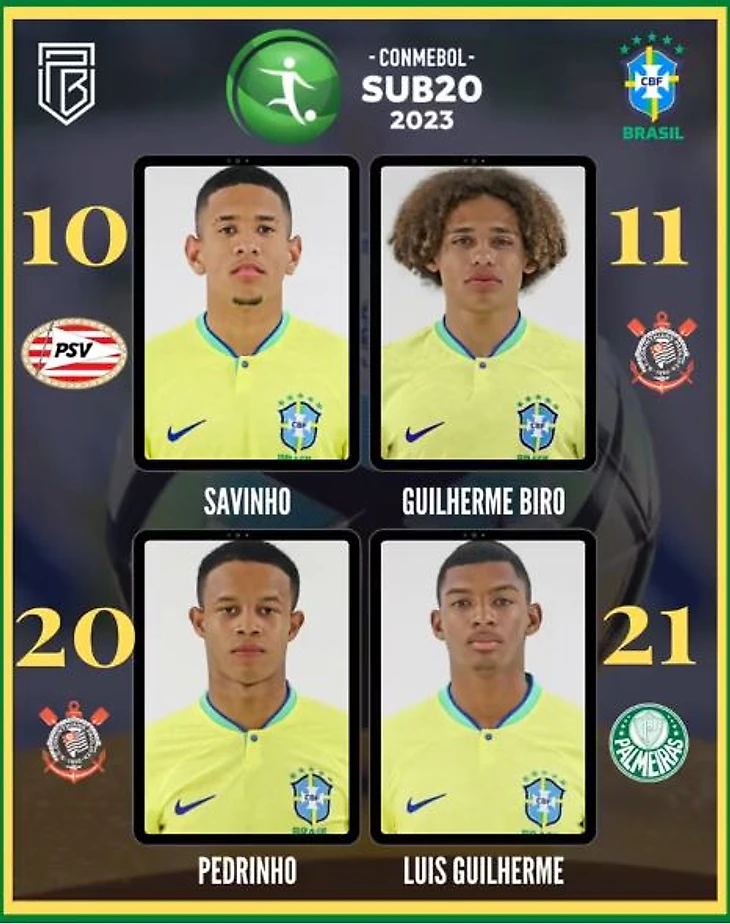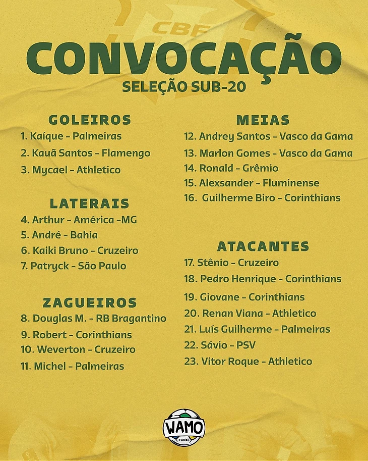 На последнем этапе травму получил загейро "Палмейраса" Мишел, его заменил Жеан из "Коритибы". Зато Андрей Сантос договорился с "Челси" и примет участие в турнире. Капитан важен для этой сборной. Коротенько расскажу обо всех 23 игроках, которых тренер Рамон Менезес вызвал на турнир. Среди них есть несколько талантов, которые в ближайшем будущем могут попасть во взрослую команду.