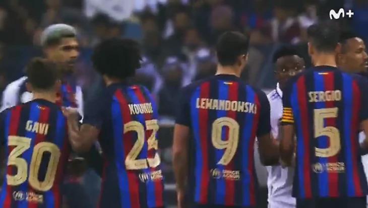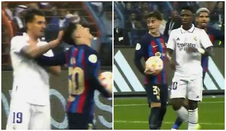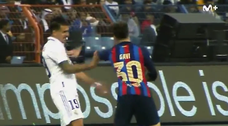 Там его уже ждал Винисиус, который очень активно пытался что-то выговаривать Гави. Бразильца оттеснили игроки каталонского клуба.