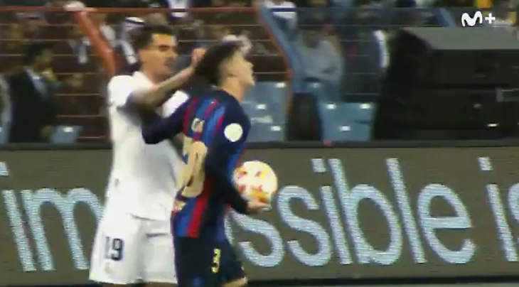 Хавбек каталонского клуба Гави нес мяч в руках, когда к нему подошел Дани Себальос и дернул его за волосы.