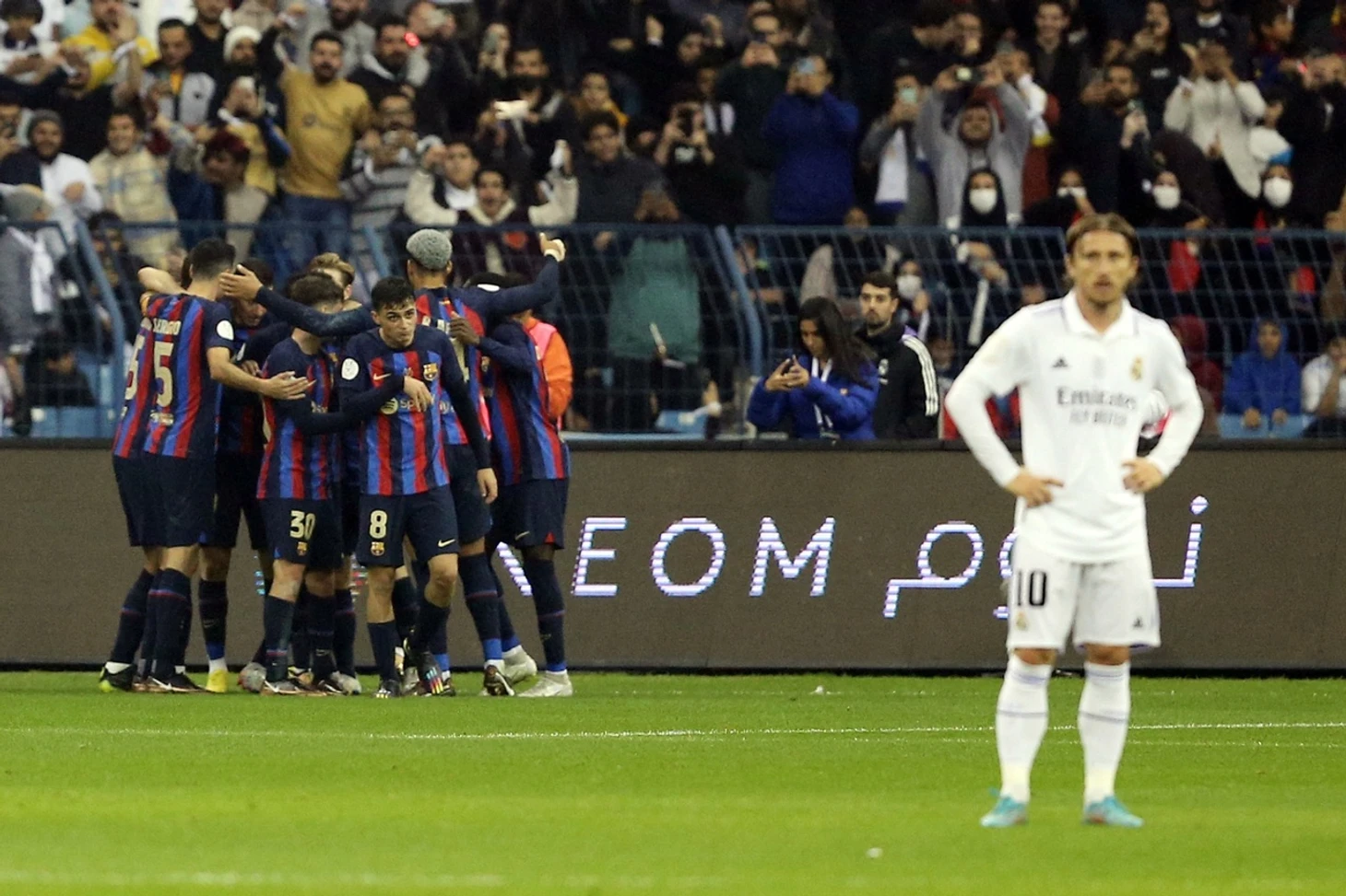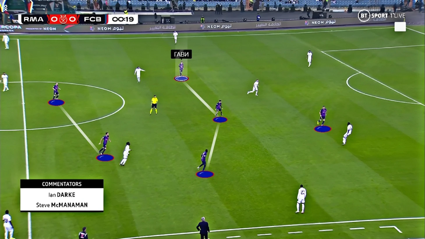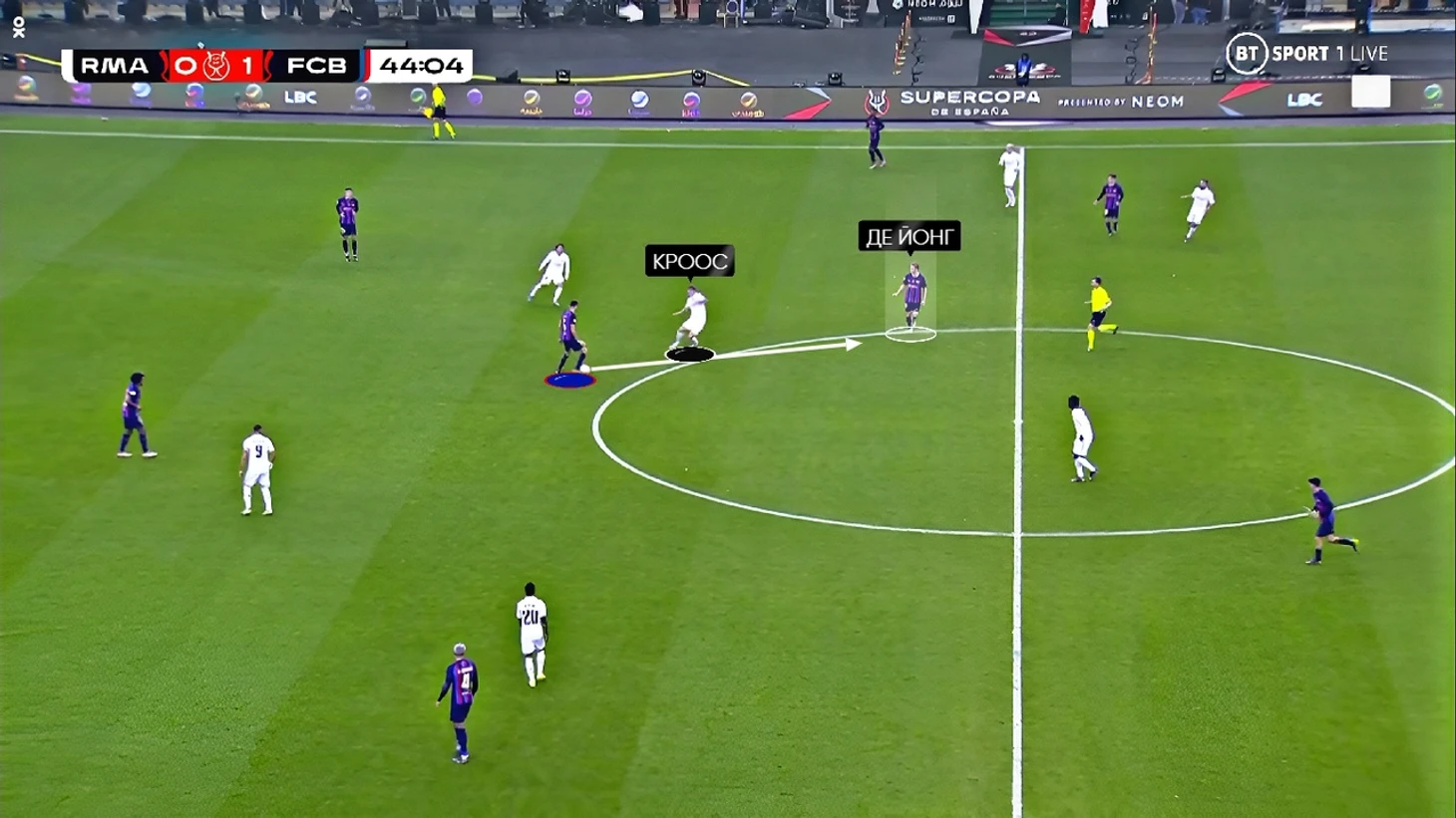 В первую очередь такое расположение связано с системой прессинга «Барсы» на этот матч. В центре поля «каталонцы» прессинговали по персональным ориентировкам – Педри с Кроосом, Бускетс с Камавингой, а де Йонг с Модричем:
