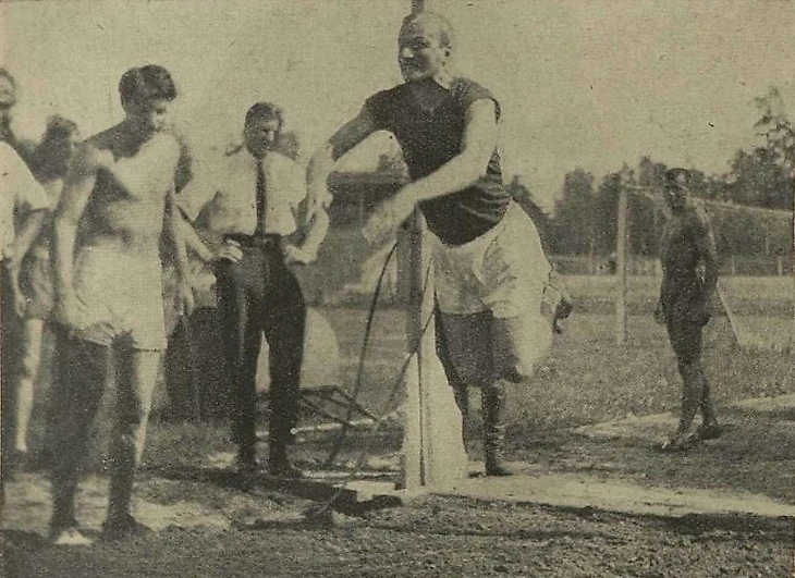 Лето 1925 года. Спортплощадка ОППВ. Соревнования по легкой атлетике. Прыжки в дину с места (фото Г. Иоссы из двухнедельного иллюстрированного журнала «Известия физической культуры» № 16 за август 1925 года)