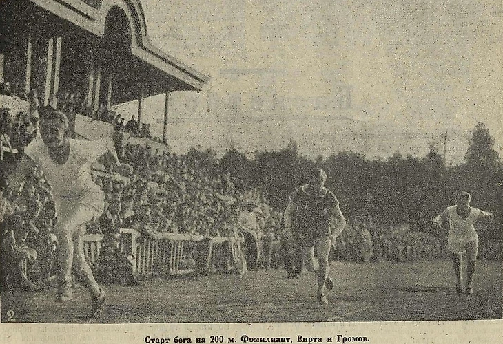 13 июля 1924 года. Спортплощадка ОППВ. Соревнования по легкой атлетике (фото В. Лободы из двухнедельного иллюстрированного журнала «Известия физической культуры» № 14 за июль 1924 года)