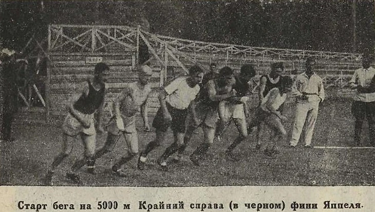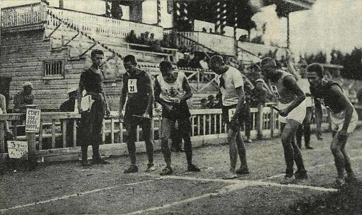 Лето 1925 года. Спортплощадка ОППВ. Соревнования по легкой атлетике. «Момент бега на 1000 метров» (фото Г. Иоссы из двухнедельного иллюстрированного журнала «Известия физической культуры» № 16 за август 1925 года)