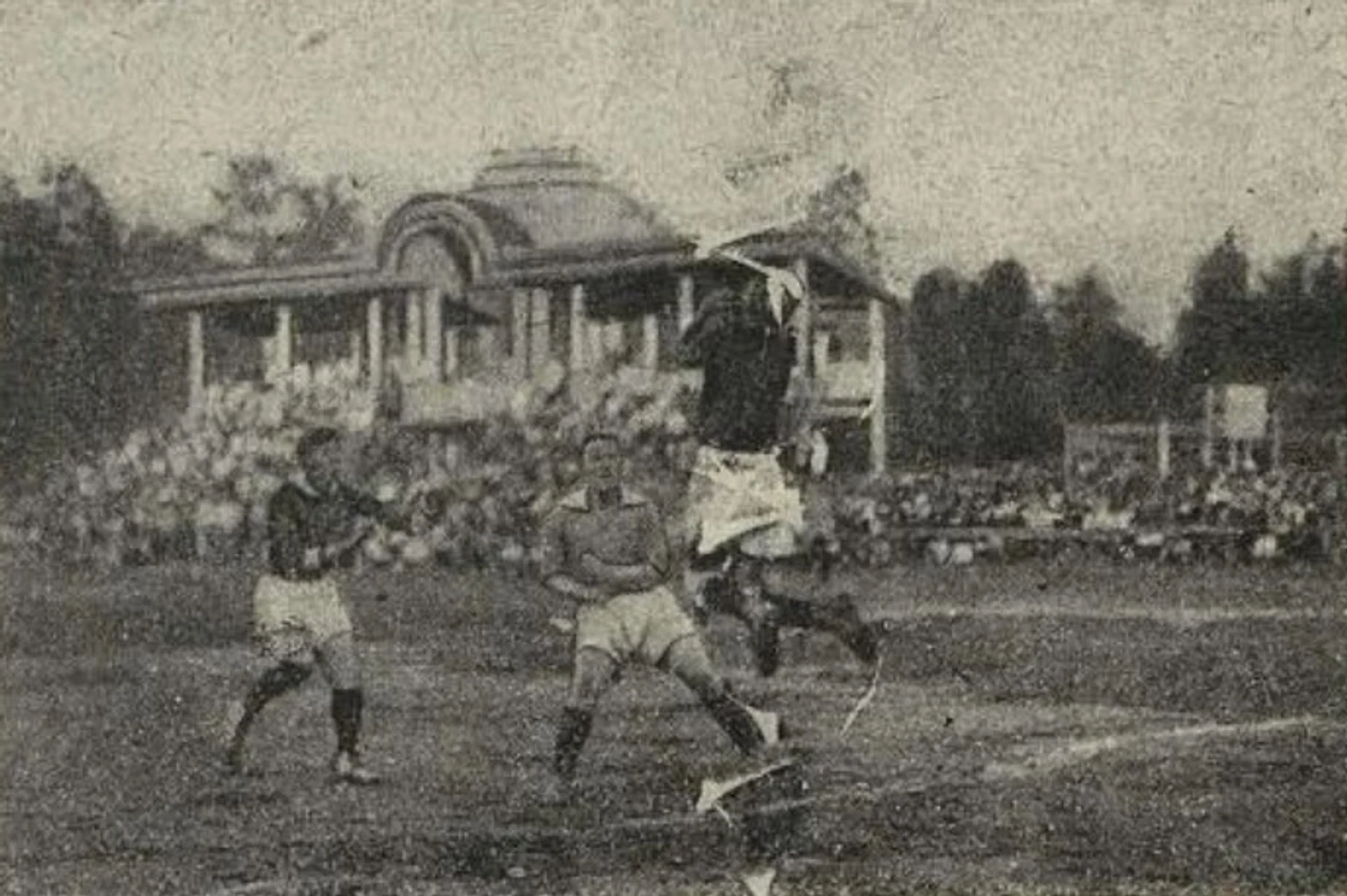 Самый красивый стадион Москвы начала ХХ века. Был расположен в сосновой роще, выделялся уютной башенкой
