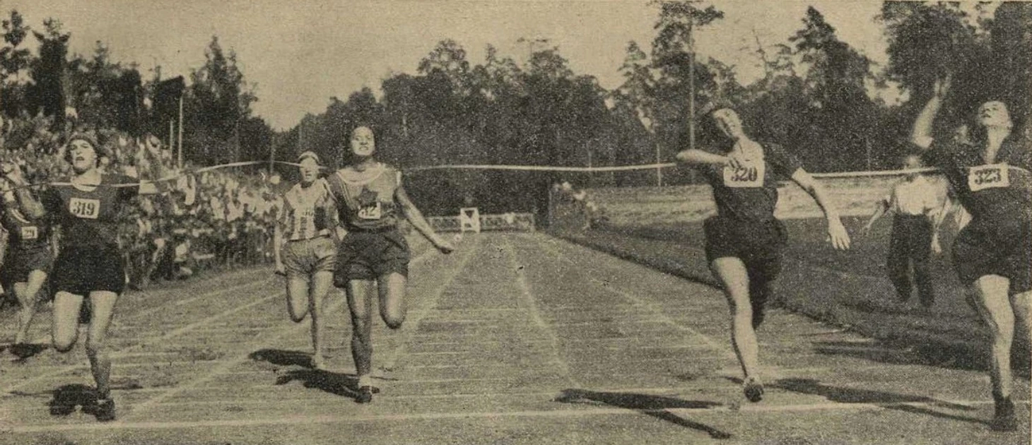 27 мая 1928 года. Стадион ЦДКА. «Весенний день эстафет» (в перерыве футбольного матча ЦДКА – «Динамо»). Команда Московского губернского отдела Всесоюзного союза рабочих пищевой и вкусовой промышленности (МГО ВСРПВП) / «Пищевички», победившая в эстафете 5 х 500 метров в составе: Ждановой (1 этап), Родионовой (2 этап), Чистяковой (3 этап) , Гусевой (4 этап) и Ивановой (5 этап) с новым всесоюзным рекордом – 7:31,5 (фото из еженедельника «Физкультура и спорт» № 23 за 1928 год)