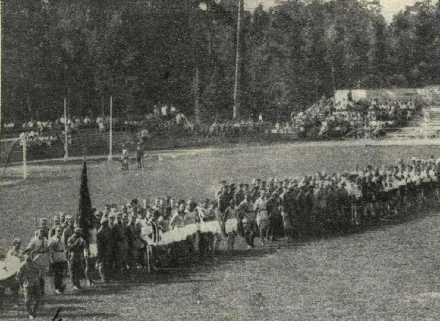 Август 1925 года. Спортплощадка ОППВ. II Всесоюзное спортивное первенство РККА. Парад (фото Прохорова из двухнедельного иллюстрированного журнала «Известия физической культуры» № 17 за август 1925 года)