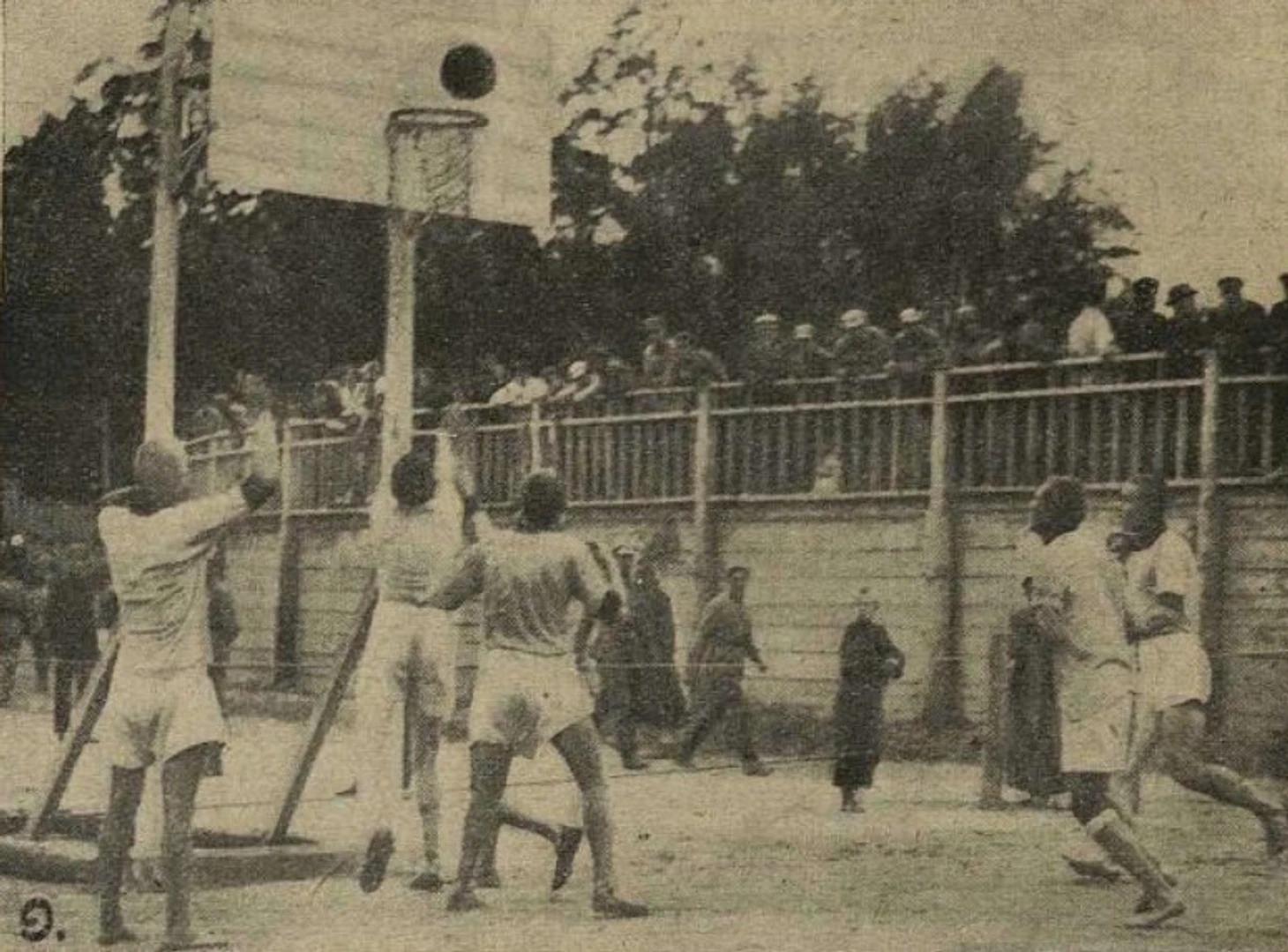 Август 1925 года. Спортплощадка ОППВ. Первенство Московского военного округа. Баскетбол (фото из двухнедельного иллюстрированного журнала «Известия физической культуры» № 16 за август 1925 года)