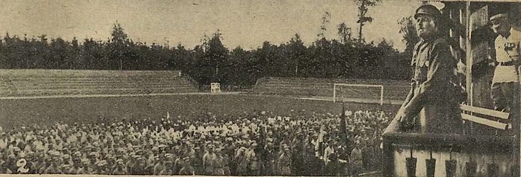 1927 год. Москва. Стадион ОППВ. «Площадка ОППВ в Сокольниках» (фотоэтюд С. Красинского из двухнедельного иллюстрированного журнала «Известия физической культуры» № 11 за июнь 1927 года)