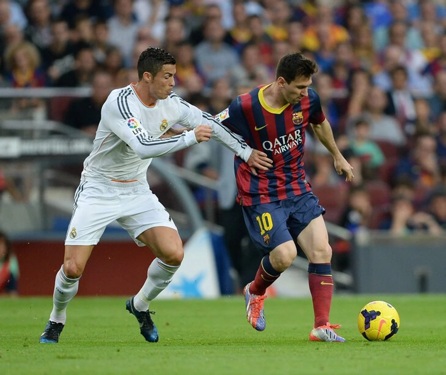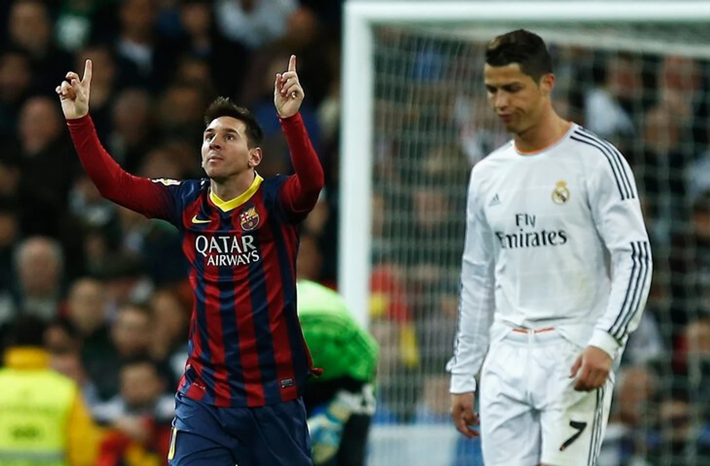 В марте 2014-го прошел самый голевой из совместных матчей. «Барселона» выиграла в Мадриде 4:3, а Месси забил хет-трик, дважды отличившись с пенальти. У Роналду один гол – тоже с пенальти.
