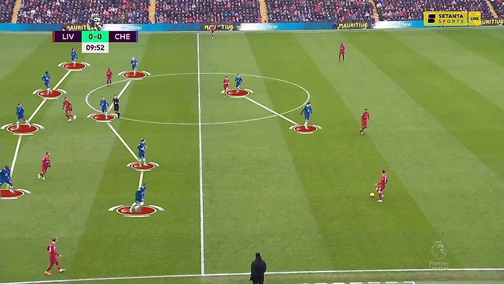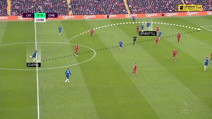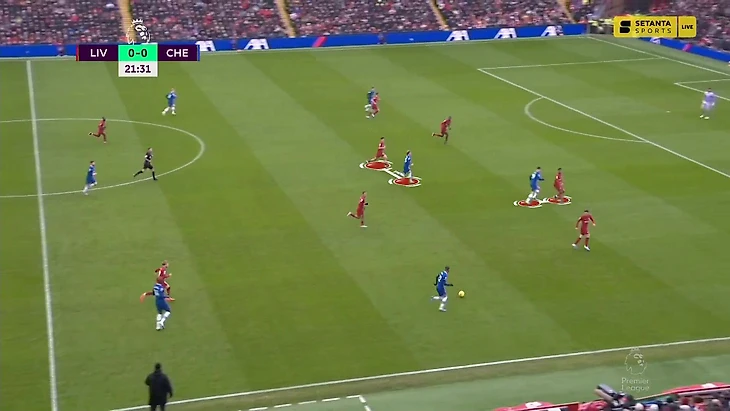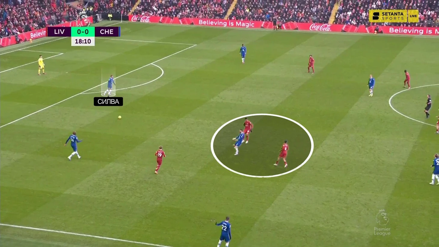«Челси» выглядел интереснее «Ливерпуля» в первом тайме, но основные моменты организовал не из трудных перестроений, а из переходных эпизодов и стандартов. Гибридные штучки Поттера выглядели сырыми и не на 100% понятными игрокам. Благо у соперника были схожие проблемы.