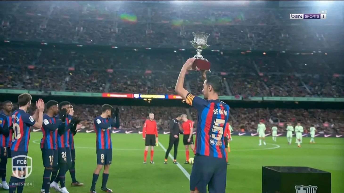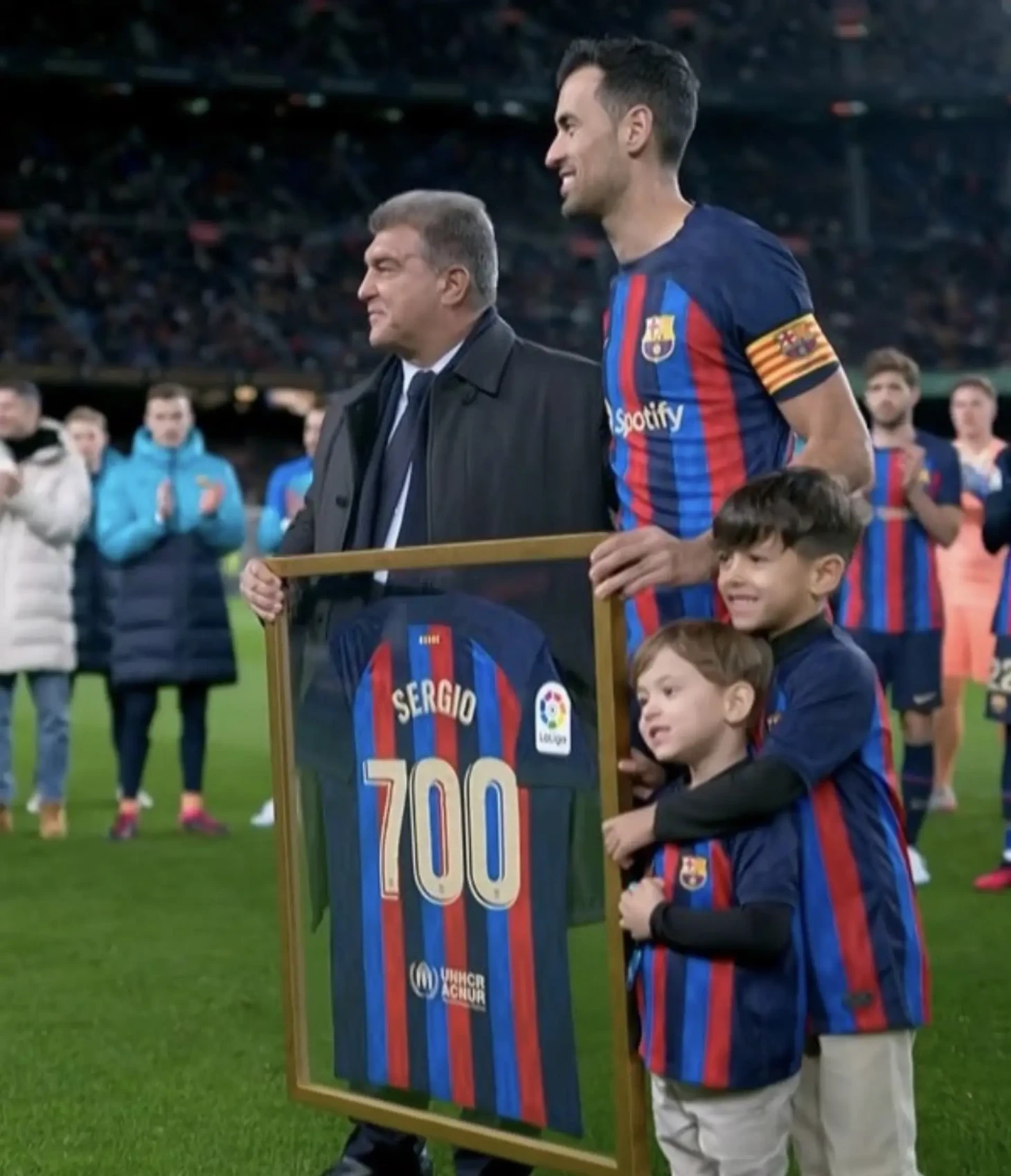 Капитану «Барсы» Серджи Бускетсу вручили футболку с 700-м номером. Столько матчей провел хавбек за каталонский клуб.
