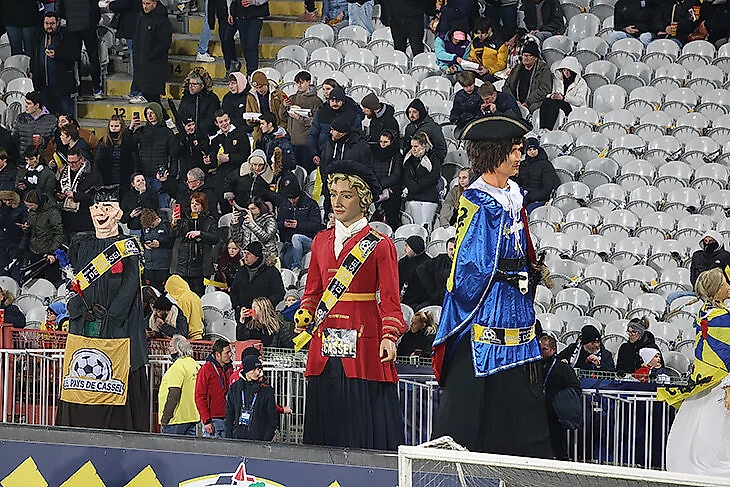 Стадион сделали чуть более домашним в том числе за счет вот таких великанов – традиционных для севера Франции и конкретно Касселя, близкого к фламандской культуре.