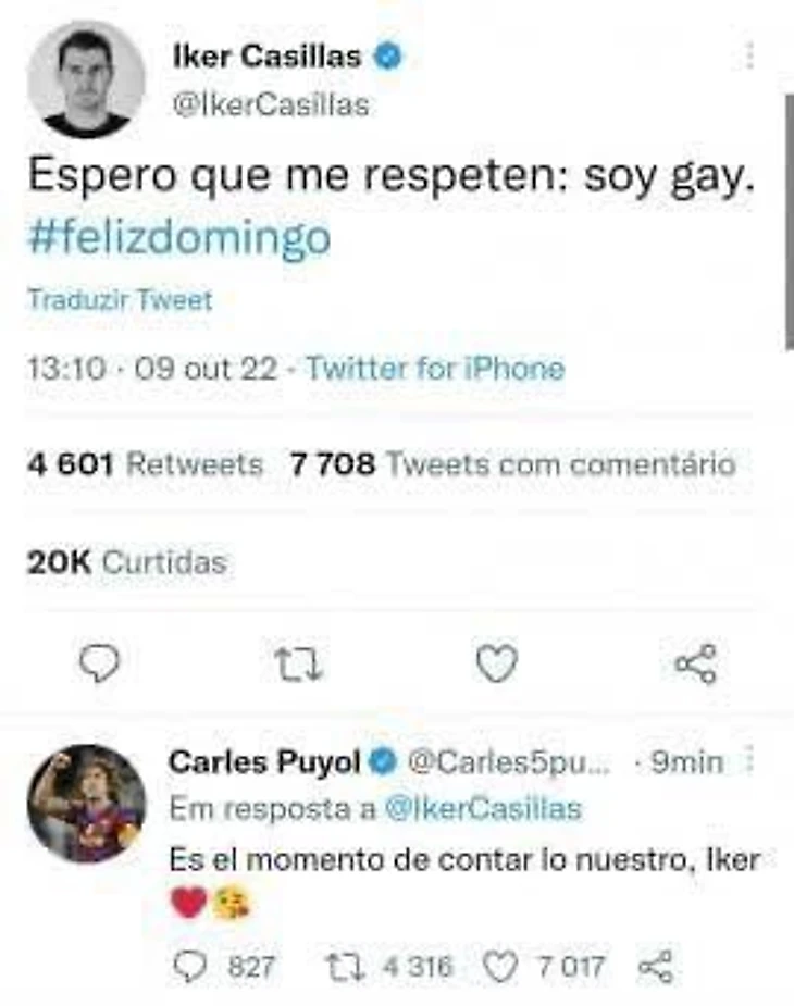 «Настала пора рассказать о нас, Икер», — написал Пуйоль в комментариях, добавив эмодзи алого сердца и поцелуя.