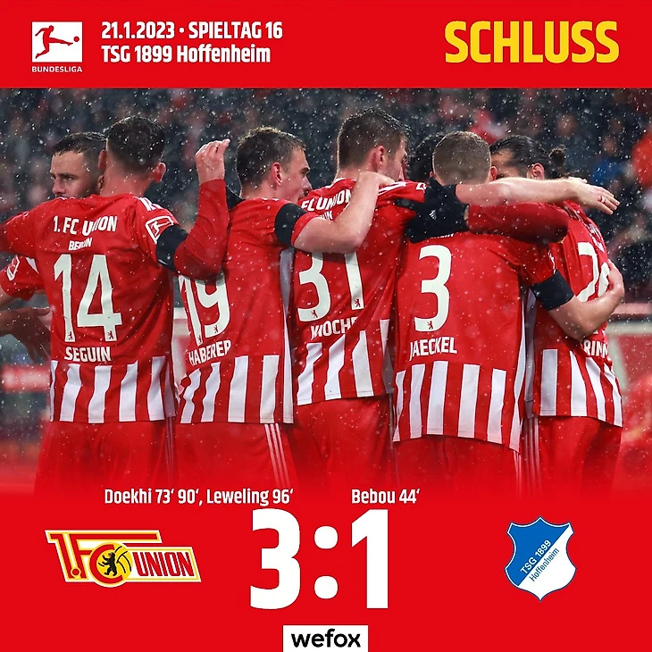 «Унион» продолжает битву за выход в еврокубки, а «Хоффенхайм» опускается все ближе к зоне вылета.
